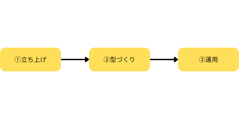 ①・②(立ち上げ・型作り)は外部が得意